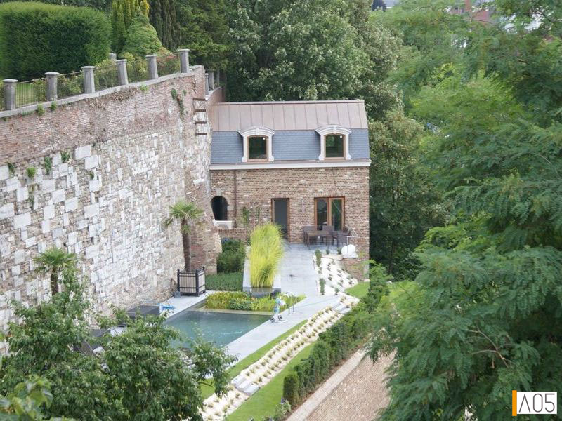 Sur un terrain dominant la ville de Liège et son Boulevard de la Sauvenière, ce projet d'une salle de fitness privée et d'une piscine s'intègre dans un projet existant...