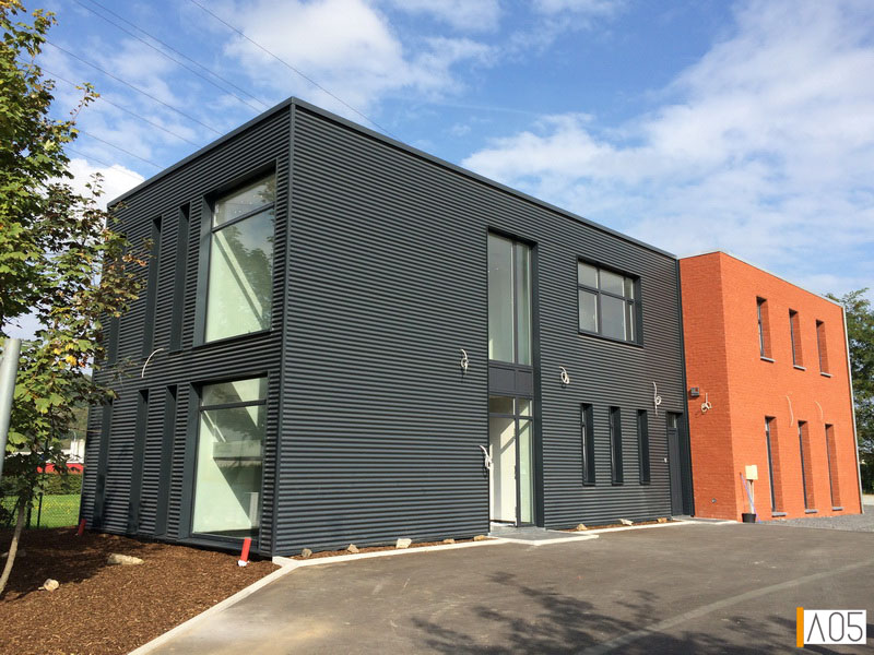 Cet ensemble est composé d'une partie technique pour les ouvriers : douches, vestiaires, salle commune, et d'une partie administrative : open office, bureaux individuels, salle de réunion, salle de projection, ...