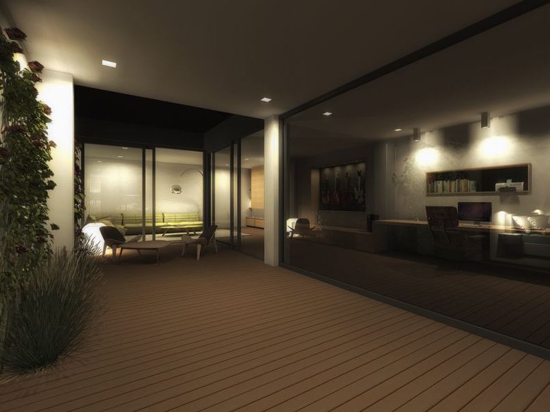 Le jeu des cours et terrasses intérieures amène une lumière particulière tout au long de la journée.
