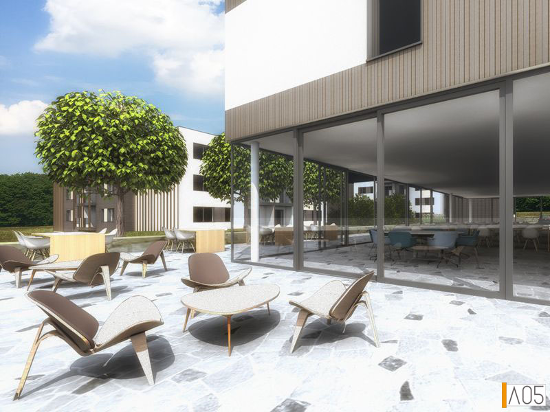 Ce projet consiste en la réalisation de 2 blocs de 24 résidences de service chacun, ainsi qu'un volume à rue composé d'une salle de restaurants, d'une salle polyvalente et de bureaux.