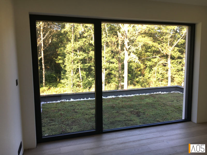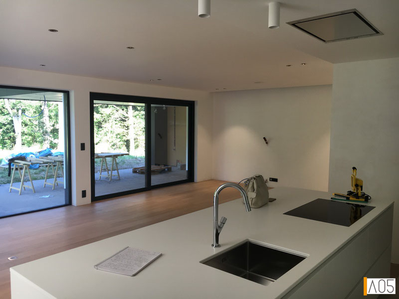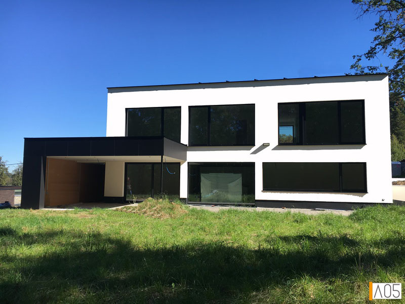 Située sur un superbe terrain partiellement boisé, au coeur de la campagne de Trooz, ce projet se voulait épuré.