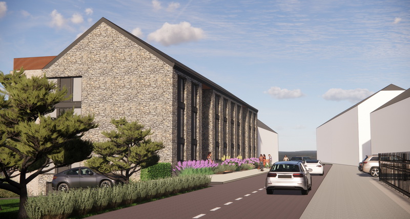 Le moellons est mis à l'honneur en façade avant afin de respecter le cadre bâti existant, et l'arrière se veut plus "dynamique" et léger avec ses teintes claires et le bardage bois !