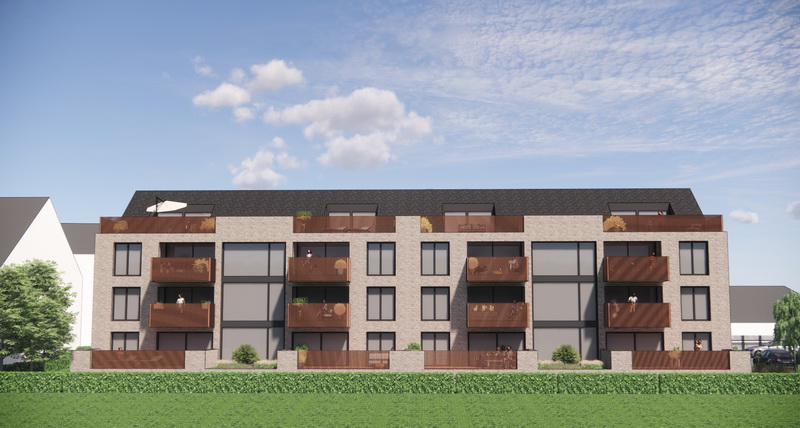 Splendide nouveau bâtiment composé d'un grand parking, de 12 appartements de standing avec terrasse et/ou balcon, le tout dans un cadre champêtre et verdoyant sur la Commune d'Aywaille.