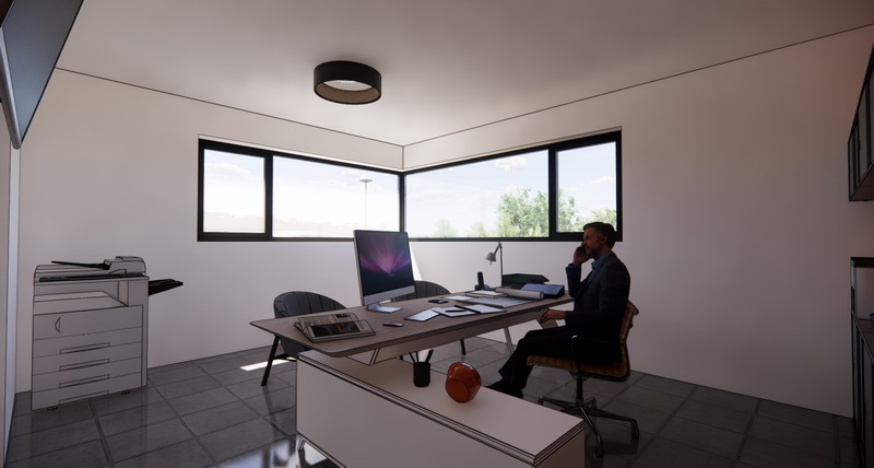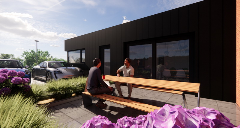 Enfin, nous retrouvons une vaste zone parking végétalisée pour faciliter l'accès des employés et clients.