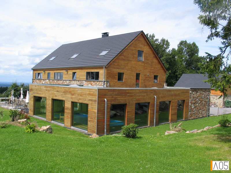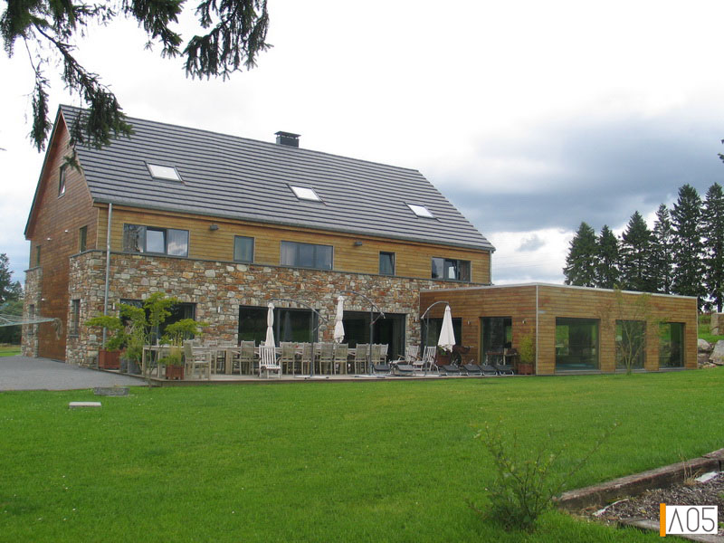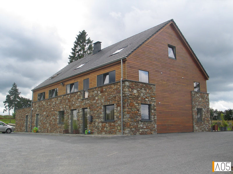 Les matériaux de parement sont dans le style local, pierre naturelle et bardage bois...