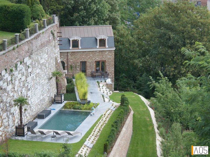 Sur un terrain dominant la ville de Liège et son Boulevard de la Sauvenière, ce projet d'une salle de fitness privée et d'une piscine s'intègre dans un projet existant...