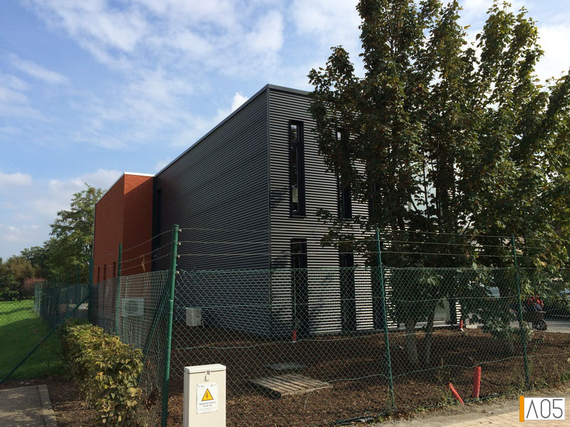 Cet ensemble est composé d'une partie technique pour les ouvriers : douches, vestiaires, salle commune, et d'une partie administrative : open office, bureaux individuels, salle de réunion, salle de projection, ...