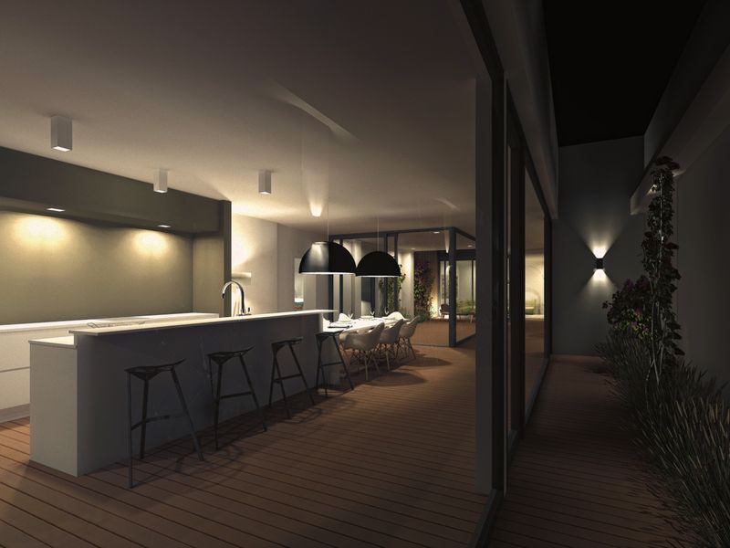 Le jeu des cours et terrasses intérieures amène une lumière particulière tout au long de la journée.