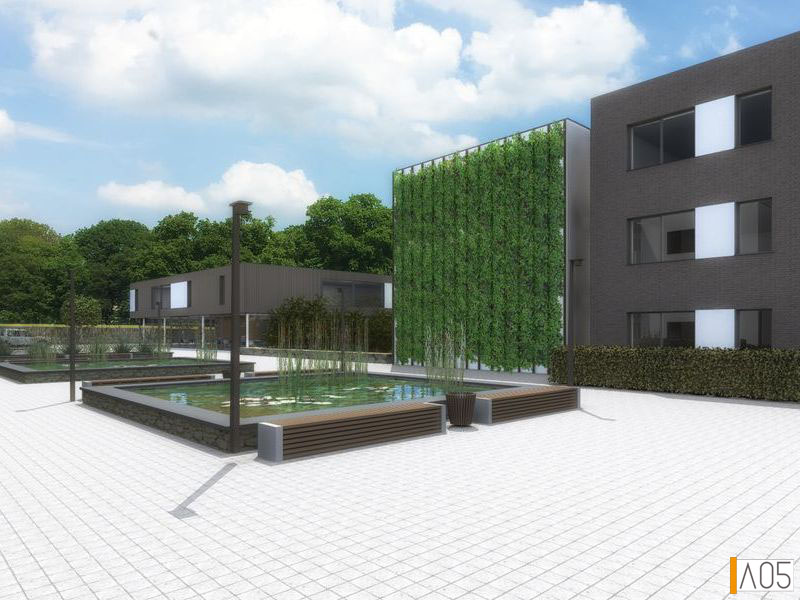 Les 2 bâtiments de résidences service s'articulent autour d'une place commune, avec plusieurs plans d'eau et de nombreux mobiliers urbains afin de favoriser les échanges entre voisins.