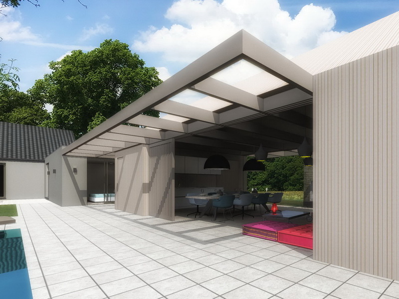 Un nouvel ensemble "rattaché" à la maison principale par une grande pergolas servant de lien entre l'existant et le rêve.
