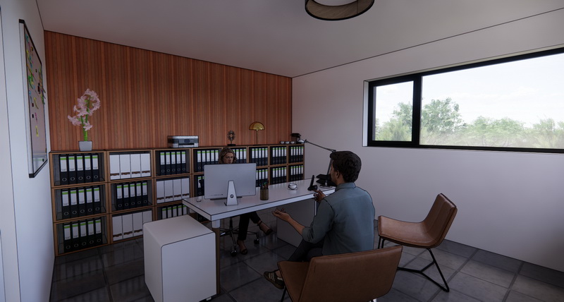 Enfin, nous retrouvons une vaste zone parking végétalisée pour faciliter l'accès des employés et clients.