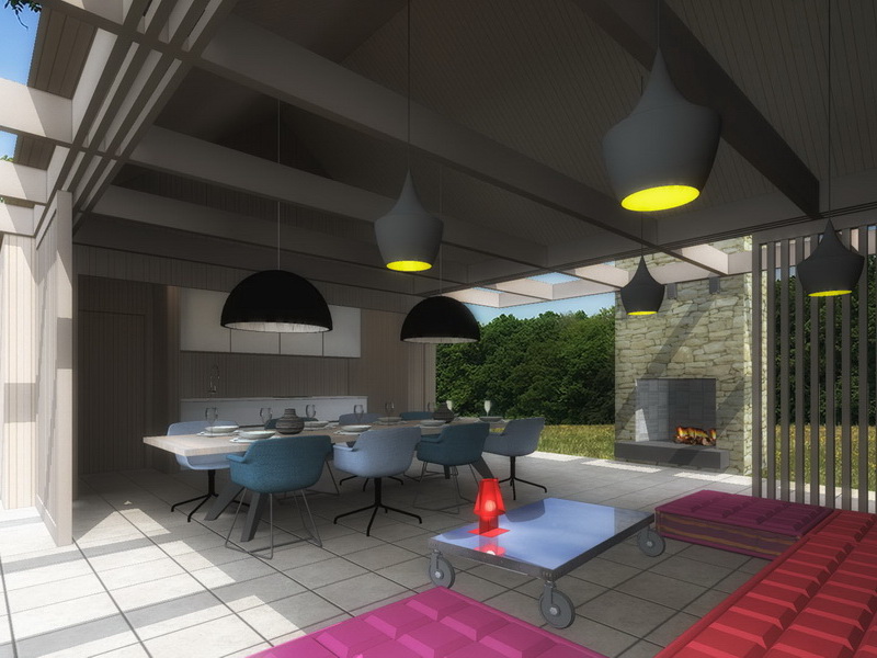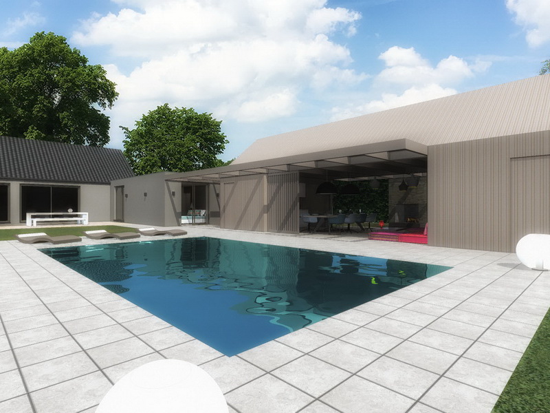 Un nouvel ensemble "rattaché" à la maison principale par une grande pergolas servant de lien entre l'existant et le rêve.